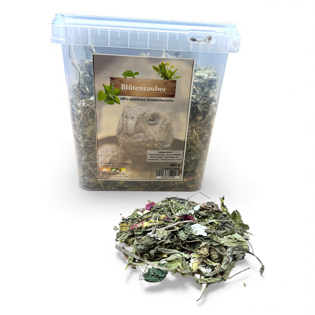 Der Blütenzauber ist frei von Getreide und somit ein leicht verdauliches Ergänzungsfutter für Schildkröten und Nager.